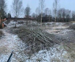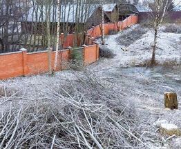 Земельный участок 10.5 соток, правильной прямоугольной формы. На участке растут сосны, посажены декоративные кустарники и растения.