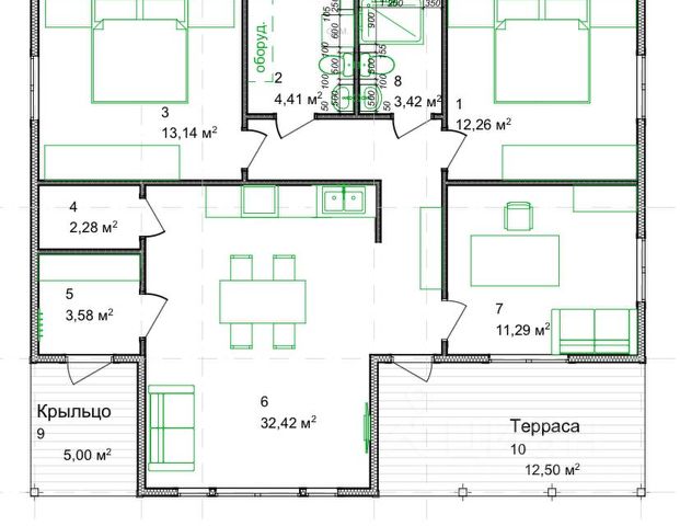 Кухня-гостиная - 22 м2 правильной формы, два окна на разные стороны и + выход на террасу на южную часть = трёхсторонний вид ( много света, солнца, воздуха.)