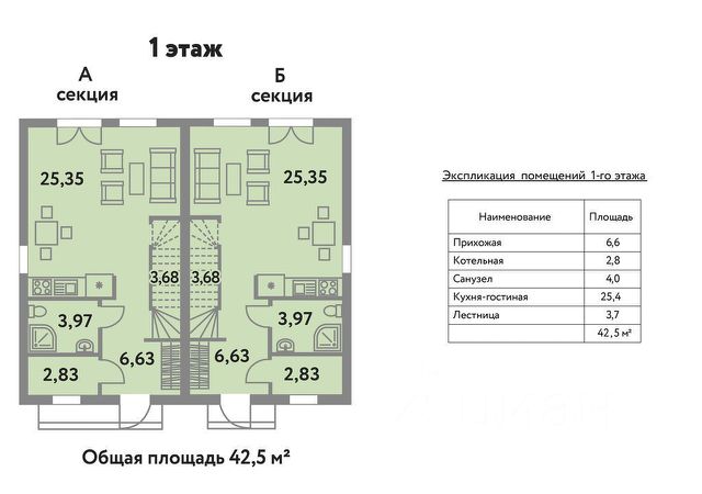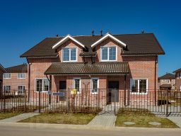 Дуплекс 83,7 кв. м, из газобетона c участком 2,6 сотки. Дом идеально расположен по сторонам света и в поселке, нет вида окна в окна.