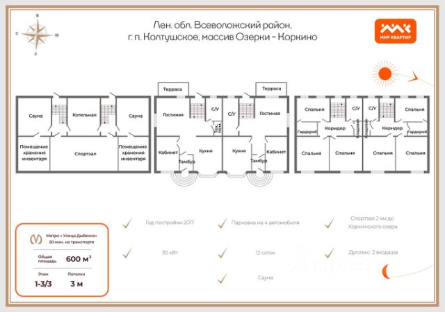 Продаётся полностью готовый к проживанию, с мебелью и техникой двухэтажный дом из газобетона площадью 139,3 кв. м для постоянного проживания, гостевой дом площадью 34,2 кв. м на разработанном и огороженном забором участке площадью 9,09 сот. на Колтушской возвышенности. Номер объекта: 100_189 В основании дома железобетонная плита 300 мм. Стены - газобетонные блоки 300 мм. Утепление стен - 50 мм минеральная вата. Кровля - плоская, парапетная. Утепление 100 мм пеноплекс, 150 мм керамзит, гидроизоляция наплавляемая двухслойная Технониколь. Окна - двухкамерные стеклопакеты. Входная дверь металлическая с терморазрывом. В доме расположены 4 спальни, 2 санузла, большая кухня, техническое помещение, балкон, терраса. Продаётся с мебелью и техникой. Кухня с холодильником, посудомоечной машиной и стиральной машиной. Коммуникации: -Электричество 15 кВт., 3-х фазное, двухтарифный счётчик; -Водоснабжение - индивидуальная скважина 40 м с системой фильтрации. -Отопление - водяные теплые полы и радиаторы от электрического котла. -Канализация - станция глубокой биологической очистки, производительностью на 8 человек. -Подключен газ. На участке построен гостевой дом площадью 34,2 кв. м, хозяйственная постройка, навес для автомобиля. Въезд оборудован откатными воротами. Участок огражден забором. Идеально подходит для постоянного проживания. В 6 минутах ходьбы от автобусной остановки, магазина Магнит, пунктов выдачи. В 2 км, в Колтушах, детские сады, школы, озеро с пляжем, парк и многое другое. От КАД - 10 км 30 мин до м. Ладожский вокзал. Участок расположен рядом с объектом Всемирного наследия ЮНЕСКО Колтушской возвышенностью, живописнейшим местом с прогулочными лесными тропами и смотровыми площадками. Дома и участок в собственности. Документы готовы к сделке. Звоните! Будем рады ответить на все имеющиеся вопросы и запланировать показ в удобное для Вас время!