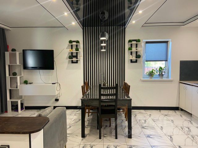 В доме кухня-гостиная, 3 комнаты, сан узел, котельная и терраса. Все коммуникации подключены. Дом теплый, проверенный.