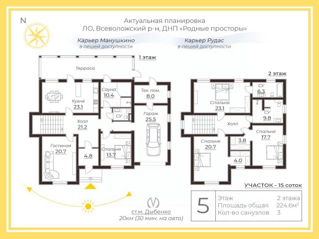 • ✅ Минимальная площадь: 110 м² (площадь дома), 5,2 сот. (площадь участка)
