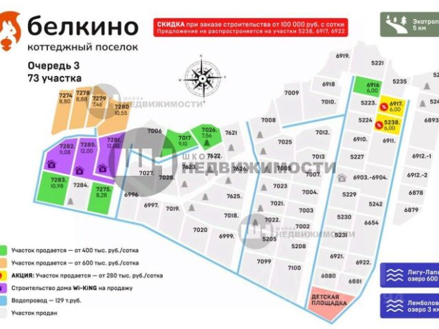 ПРОДАЁТСЯ УЧАСТОК в коттеджном поселке "Белкино", расположен в живописном сосновом лесу, в 4х минутах от Лемболовского озера. Сосны растут на каждом участке. Все участки оснащены водопроводом и электричеством. Лучший вариант для постоянного проживания в своем доме близко к городу на природе. Возможен заказ строительства дома под ключ по готовым и индивидуальным проектам. Земельные участки: • от 6 до 18 соток • проведено межевание • участки в собственности • возможна прописка • 25 минут до КАД Развитая инфраструктура. В пяти минутах от поселка: В пяти минутах от поселка: • сетевые магазины • строительный магазин • аптеки и поликлиники • детский сад и школа • конный клуб • веревочный парк • охраняемая территория Коммуникации: • электричество • водоснабжение • строительство дорог по финской технологии • центральное освещение улиц Специальные предложения: • скидки при полной оплате • рассрочка • ипотека Природа и экология: • сосновый лес • лесная речка • Лемболовское озеро • лесное озеро Лигу-Лапи • экотропа 5 км Звоните, записывайтесь на просмотр! Номер объекта: #1/538784/24116