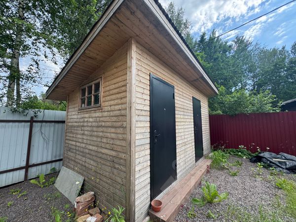 УЧАСТОК 10,54 сотки, отмежеван, огорожен по периметру. Есть небольшой перепад. Участок сухой! Почти на всем участке хороший плотный газон, исключение - садовый уголок. Есть теплица и садовые посадки: смородина, крыжовник, слива, орешник, яблони, малина. По периметру растут красивые лиственные и хвойные деревья. Из дополнительных построек - сарай. Участок находится в конце тупиковой улицы.