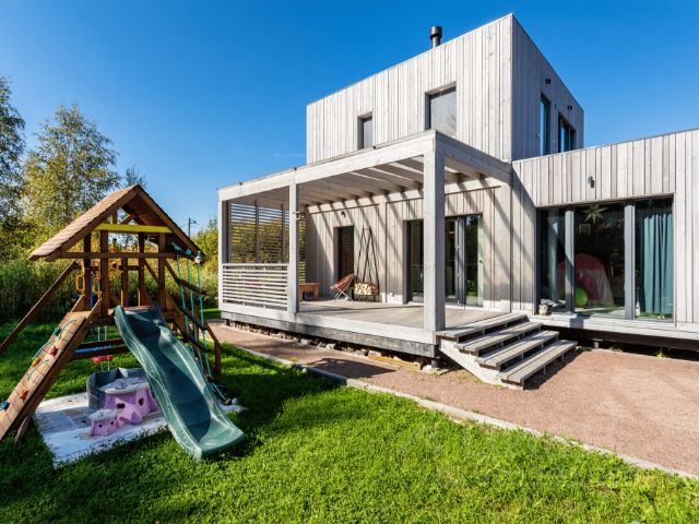 Продается стильный дом с участком у леса, расположенный всего в 20 км от Санкт-Петербурга! В модульном двухэтажном доме от компании HoltsovHouse планировка продумана до мелочей и максимально функциональна. На первом этаже просторная кухня площадью 16,5 кв.м с дровяным камином. Благодаря панорамному остеклению открывается прекрасный вид на участок. Здесь есть выход на просторную террасу, где можно проводить время в кругу семьи и друзей. Также на первом этаже размещены две гостевые комнаты по 8 кв.м. и санузел с ванной. На втором этаже расположены спальня с выходом на эксплуатируемую кровлю- террасу с видом на лес, а так же кабинет и санузел с ванной. Дом оборудован теплыми полами по всему периметру, видеонаблюдением и интернетом. Установлена станция биологической очистки, система кондиционирования, а также подведено водоснабжение из собственной скважины. В доме есть вся необходимая бытовая техника и мебель, что делает его готовым для комфортного проживания. На дом предоставляется гарантия, а также застройщик предлагает сервисную службу для ухода и ремонта. Кроме того, есть возможность проводить ежегодное сервисное техническое обслуживание — это очень удобно для тех, кто предпочитает отдых на природе, а не работу. На участке площадью 11 соток сформирован красивый ландшафт: ровный рельеф, тротуарная плитка вокруг дома, дорожки, засеян газон и парковка на два автомобиля. Также на территории установлен стильный хозблок, который идеально подходит для хранения личных вещей и инвентаря. Дом находится в уютном и охраняемом коттеджном поселке Никольское. Вдоль поселка раскинулся густой лес, а в пешей доступности расположено небольшое озеро и красивая природа для прогулок пешком или на велосипеде. В радиусе 10 минут езды находятся посёлки Оселки и Агалатово, где вы найдете магазины, детский сад, аптеки и всю необходимую инфраструктуру для комфортной жизни. Звоните и записывайтесь на просмотр! Мы ждем вас в гости! :)