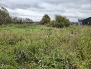 Участок: сухой, ровный, выбирали одни из первых в период активного таяния снега, вывезена глина с участка, отсыпан песком, сверху покрыт полностью плодородным грунтом, первоначально снятым с участка. Сделан въезд с ПНД трубой SN8 и площадкой 5х5 для парковки автомобилей, покрытой отсевом. Борщевика в поселке нет, участок пока не облагорожен. Есть возможность увеличить участок.