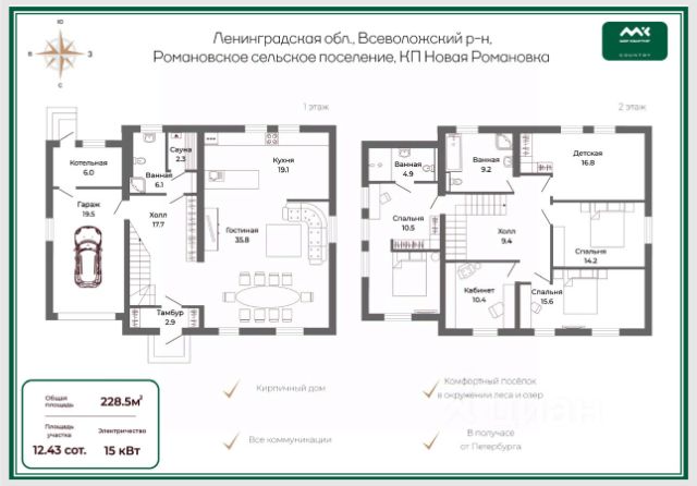 Арт. 119944550 Кирпичный дом 315 м² в коттеджном посёлке бизнес-класса "Новая Романовка" Просторный двухэтажный дом из керамического кирпича площадью 228,5 м² расположен на участке 13,4 сотки в благоустроенном посёлке недалеко от Всеволожска. Классическое качество, продуманная архитектура и современная инженерия делают этот дом надёжным и комфортным решением для постоянного проживания. Качество строительства Фундамент — монолитная железобетонная плита 300 мм. Окна ПВХ двухкамерные. Стены — керамический кирпич толщиной 380 мм с облицовкой. Межэтажные перекрытия — железобетонные, монолитные. Кровля — мягкая черепица Шинглас (Shinglas). Наружная отделка фасада — облицовочный кирпич. Коммуникации и оснащение Электричество, вода, канализация заведены в дом, газ по границе участка. Оптоволоконный интернет в посёлке. ИЖС, прописка. Гараж в доме (по проекту). Возможна рассрочка от застройщика и ипотека по базовой ставке. Планировка и пространство Площадь дома — 315,8 м² (тёплый контур). Планировка выполнена в формате трансформер, что позволяет легко адаптировать внутреннее пространство под свои задачи. Возможны варианты зонирования с несколькими спальнями, кабинетом, просторной кухней-гостиной и мастер-спальней с собственной ванной и гардеробной. Посёлок "Новая Романовка" Современный коттеджный посёлок бизнес-класса с полной инфраструктурой и высокими стандартами благоустройства. Все инженерные коммуникации — газ, вода, электричество, канализация, интернет. Асфальтированные дороги, освещение, парковки. Детские площадки, круглосуточная охрана. Общая территория посёлка — 12 гектаров, 80 земельных участков. Тихое, зелёное и экологически чистое место для жизни. Дружное соседское комьюнити. Локация Посёлок расположен в 12 км от КАД Санкт-Петербурга, всего 5 минут до Всеволожска. Рядом — школы, детские сады, магазины, кафе, спортклубы, медицинские центры. Окрестности окружены сосновыми и лиственными лесами, а Ладожское озеро находится всего в 20 минутах езды. Этот дом — выбор тех, кто ценит надёжность кирпичного строительства, продуманную архитектуру и комфорт современного загородного проживания. Готов к чистовой отделке и воплощению вашего индивидуального интерьера. Предлагаем ПРЕМИАЛЬНОЕ обслуживание для требовательных клиентов. Оперативно организуем просмотр, предоставим полную информацию по объекту. 20 лет работы с требовательными клиентами подготовили нас к решению ВАШИХ сложных задач. Будем рады знакомству! Ул. Рубинштейна, д.8.