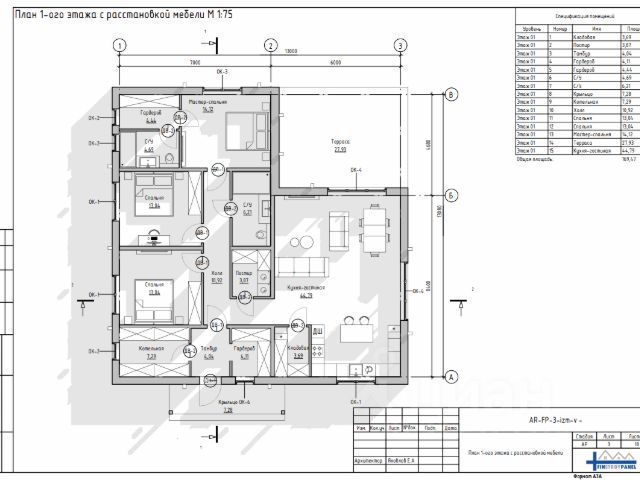 Жилая площадь дома 147м2, площадь террасы 30м2, крыльцо 10м2.