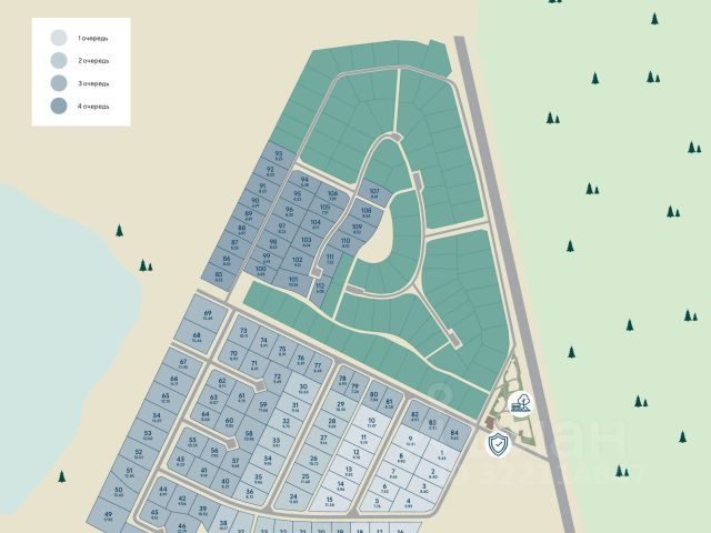 - единый фасадный забор, асфальтовое покрытие, въездные группы, освещение и тротуары;