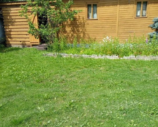 Участок ровный, огорожен забором. На участке посажены грядки с клубникой, есть малина, яблони, слива, крыжовник, смородина, цветы.
