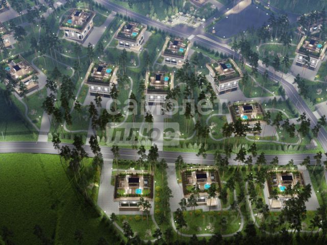 В поселке выполнены все коммуникации: водопровод, электричество, оптоволокно (проложены под землей и подведены к границам участков), сделаны подъезды ко всем домам (асфальтированные дороги с освещением).