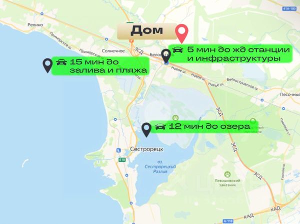 Всего 30 минут по ЗСД до центра Петербурга без пробок. В окружении лесного массива — чистый воздух и приватность. Эпицентр курортной жизни: в непосредственной близости - Репино, Комарово, Сестрорецк, Солнечное, Зеленогорск. Рядом — озеро Сестрорецкий Разлив (13 км) и река Сестра для отдыха и прогулок. Комфорт и безопасность: