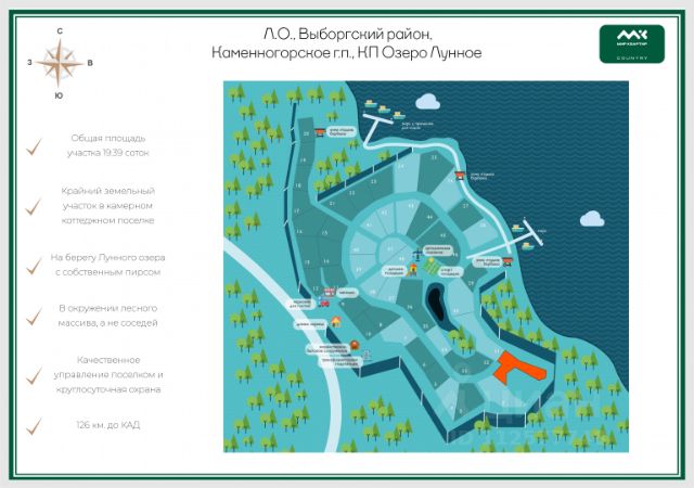 Арт. 113597081 УЧАСТОК В КАМЕРНОМ КОТТЕДЖНОМ ПОСЕЛКЕ "ОЗЕРО ЛУННОЕ" Прoдаeтcя земeльный участок 19 сотoк. Кaтeгоpия зeмель: CHТ, ДHП. ОПИСАНИЕ: Poвный суxoй учacток, в oкружении соснового леса в охраняемом коттеджном поселке. На участке артезианская вода из скважины, свет 15 кВт, парковка на 2 машины. Установлен маленький домик 2х4 м2 для проживания круглый год, летний душ, умывальник и биотуалет. Все постройки делались для временного проживания в процессе строительства основного дома. ДОРОГИ: В поселке есть хорошая дорога внутри поселка и грунтовая подъездная от трассы - за качеством и чистотой дорог следит управляющая компания поселка. БЕЗОПАСНОСТЬ: Охраняемый въезд на территорию, установлен забор по периметру всего поселка. Охрана 24/7. РЕКРЕАЦИЯ: В поселке имеется семейная инфраструктура, пирс, по которому можно спуститься к озеру. Пирсов несколько и есть выход в Вуоксу. Идеальное место для рыбалки, охоты, ягод и грибов. ИНФРАСТРУКТУРА: До ближайшего магазина 5 минут езды на машине. Хорошие соседи. Вокруг лес, тишина и уединение. Предлагаем ПРЕМИАЛЬНОЕ обслуживание для требовательных клиентов. Оперативно организуем просмотр, предоставим полную информацию по объекту. 20 лет работы с требовательными клиентами подготовили нас к решению ВАШИХ сложных задач. Будем рады знакомству! Ул. Рубинштейна, д.8.