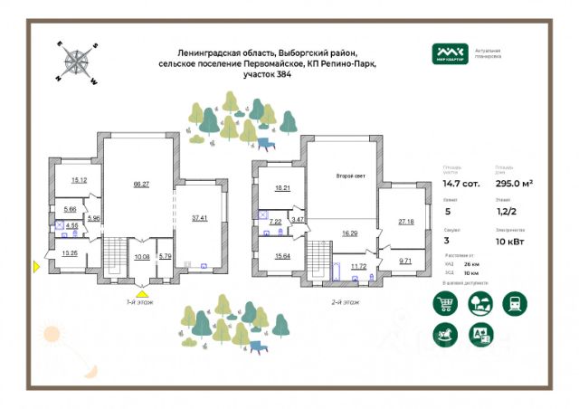В продаже находится домовладение площадью 389 метров на участке 20.40 соток в Элитном коттеджном поселке Оберег, расположенном на живописном берегу реки Сестры.