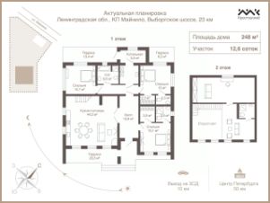 Участок представляет из себя 8 соток абсолютно ровной поверхности, на которой, помимо нашего дома, расположился гараж на несколько видов транспорта, задний двор, на котором можно сделать замечательную зону отдыха с беседкой