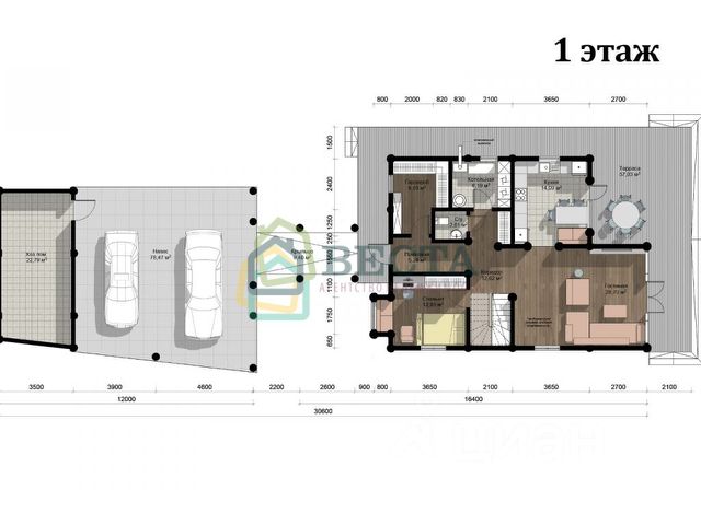 прихожую, гардеробную, кухню-гостиную со вторым светом (высота потолка 5,5 м!) - общей площадью почти 100 кв. м! Просторная гостиная позволит воплотить любые ваши самые смелые желания для комфортного проживания большой и дружной семьи! Кроме того, на 1 этаже расположены: гостевая комната 15 кв м, санузел, котельная, кладовая, постирочная и гараж с подъемными воротами (фирма Алютех).