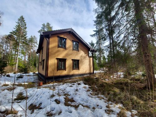 Стены дома утеплены сложным слоем утеплителя 200 мм, снаружи "обшиты" фиброцементным сайдингом (Cedral), изнутри - имитация бруса из дерева хвойных пород, покрытой интерьерным лаком, имеющим также свойства антисептика. Крыша дома также утеплена с помощью материала "Paroc Extra" 200 мм, покрыта многослойной гибкой черепицей. Покрытие пола на 1 этаже - керамическая плитка под ламинат в кухне-гостиной, на 2 этаже - ламинат. Окна представлены пластиковыми 2-камерными стеклопакетами цвета венге.