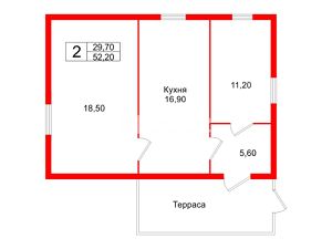 В доме удобная, продуманная планировка. Просторная светлая кухня-гостиная с панорамными окнами, две спальни, сан/узел, изолированная прихожая, большая терраса.