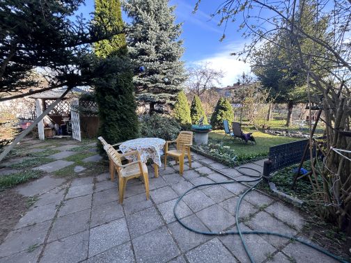 Домовладение расположено на ровном сухом участке. Выращены кустарники, плодовые деревья, ели и сосны, засеян газон, с автоматической системой полива, выполнен ландшафтный дизайн, пруд. Есть возможность присоединить 2 сотки. На въезде установлены автоматические ворота и отдельная калитка с видеофоном (управление с телефона).