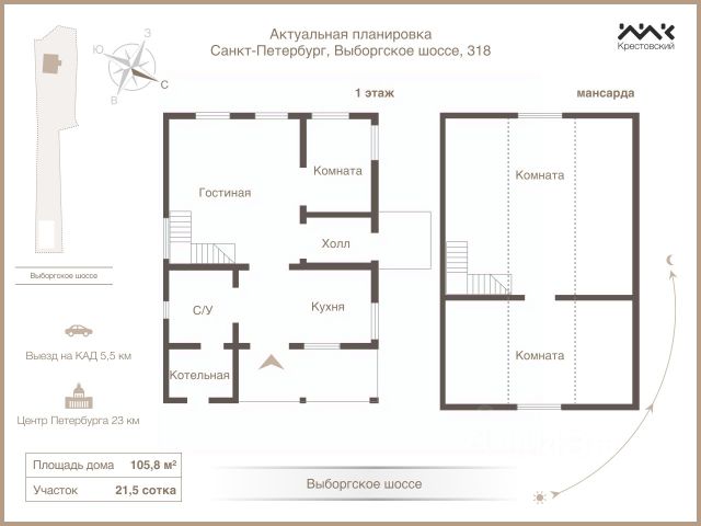 ID: 585138 Эксклюзивное предложение! Идеальный современный дом в престижном районе города — купите завтра! Представляем уникальный, абсолютно новый дом 2024 года постройки — настоящее воплощение комфорта, стиля и современности! Этот дом — лучшее решение для тех, кто хочет жить в элитной недвижимости в черте города без компромиссов. Почему именно этот дом? Непревзойденный дизайн и функциональность — стильная внутренняя отделка, готовность к проживанию без дополнительных вложений. Мощная световая гамма — панорамные огромные окна, пропускающие дневной свет и наполняющие пространство теплом и уютом. Даже в ванной комнате окно с живописным видом на участки. Три мастер-спальни + кабинет — идеальное решение для семьи любой величины, возможность работать на удаленке или оборудовать индивидуальные пространства. Обособленная хозяйская спальня — с просторной гардеробной, отделена от других комнат для максимальной уединенности. Кухня-столовая с высоким потолком — центр семейных сборов и творческих идей, выход во двор из любой комнаты. Уникальный спа-зона — для релаксации и восстановления после тяжелого дня. Современные коммуникации — теплые полы по всей площади, система приточно-вытяжной вентиляции, кондиционирование, котельная в гараже. Дом под ключ — готов к проживанию и заботам нового владельца. Большой теплый гараж 65 кв.м. — на 2 автомобиля. Благоустройство территории — собственный участок, выходы из всех помещений, уютный двор для отдыха и семейных мероприятий. Расположение и транспортная доступность: - Улица — тупиковая, без автомобильного трафика, тихо и безопасно. - Новый асфальт и хорошая инфраструктура. - В пешей доступности — детская спортивная школа, озера Озерки — отличное место для прогулок, отдыха на природе и активного образа жизни. - Спокойные и достойные соседи. Этот дом — уникальный шанс купить дом в городе, сочетающий уют загородной жизни и инфраструктуру мегаполиса! Звоните прямо сейчас! Увидеть и оценить все преимущества лично — возможность стать хозяином этого исключительного дома завтра. Запишитесь на просмотр уже сегодня! Юридическое сопровождение. Номер объекта: #1/585138/14501 Купить загородную недвижимость в районе Выборгский в Санкт-Петербурге.
