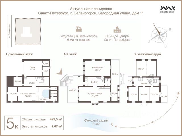 Арт. 117604850 Высокое качество строительства и простор — этот дом в Зеленогорске предлагает идеальное сочетание надёжности, комфортной планировки и близости к природным богатствам Финского залива. Площадь дома — 500 м2. Он построен из кирпича, благодаря чему обеспечивается отличнаяя тепло- и звукоизоляция, а также долговечность конструкции. Большие окна обеспечивают обилие естественного света и открывают прекрасные виды на зелёный участок. Коттедж идеально подойдёт большой семье. Планировка включает несколько светлых спален, просторную кухню-гостиную площадью 70 м², несколько санузлов и уютные зоны отдыха. Участок вокруг дома ухожен и благоустроен. Есть место для сада, зоны барбекю и детской площадки. В шаговой доступности расположены лесные массивы и парки, что делает это место идеальным для активного отдыха и спокойной жизни. Зеленогорск — один из самых привлекательных пригородов Санкт-Петербурга. мягкий климат, живописные пляжи Финского залива и развитая инфраструктура для отдыха и оздоровления. Здесь можно наслаждаться прогулками по набережной, купанием в чистой воде, а также посещать санатории, спа-центры и спортивные комплексы. Транспортная доступность — одно из ключевых преимуществ этого предложения. Зеленогорск удобно расположен и связан с центром Санкт-Петербурга регулярным автобусным и железнодорожным сообщением, что позволяет быстро и комфортно добираться до города как на личном автомобиле, так и на общественном транспорте. Звоните, чтобы узнать детали и договориться о просмотре! Продам загородную недвижимость на улице Загородная в городе Зеленогорск в Санкт-Петербурге.