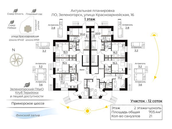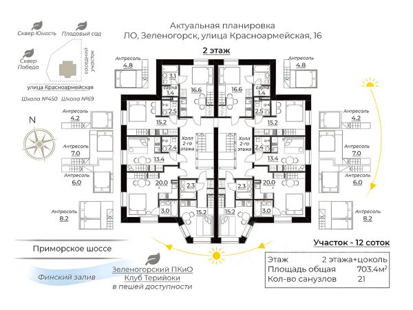 Не упустите возможность приобрести доходную недвижимость в самом сердце Зеленогорска, которая будет приносить прибыль от 24 млн чистыми в год. КОНЦЕПТ ПРОЕКТА Гостевой дом на 25 юнитов семейного формата, большая часть из которых очень редкой для России категории - dog-friendly. Все юниты имеют вместимость от 4 человек, с индивидуальной кухней и ванной комнатой. В юнитах dog-friendly дополнительно оборудованы лейки с трапами для мытья лап. На цокольном этаже запроектированы СПА-зона с баней, детские игровые комнаты, кафе, комнаты для персонала, прачечная. Данный гостевой дом будет очень популярен у семей с детьми и питомцами. На фото представлены отрисованные рендеры, как будут выглядеть юниты после реализации проекта. РАСПОЛОЖЕНИЕ Дом находится в центре Зеленогорска, в 9 минутах ходьбы от Зеленогорского парка и в 12 мин от пляжа. От ЖД станции 20 мин пешком. Перед домом предусмотрена парковка на 7 машин. О ДОМЕ, УЧАСТКЕ На участке расположены 2 дома: большой дом общей площадью - 703.4 м2 Маленький дом общей площадью 147.23 м2: 1эт - гараж на 2 машины с авт. воротами, котельной. 2эт - 2 спальни, холл-гостиная, кухня, ванная и туалет. Конструктив: - фундамент монолитный железобетон с глубиной заложения 3200см - наружные стены блоки с перевязкой кирпичной кладкой - перекрытия сборные железобетонные плиты Участок - 12 соток. Вид разрешенного использования для инд. Жилищного строительства. Но по желанию нового собственника можно перевести в другие виды - по ГПЗУ (этот документ можем предоставить по запросу) на участке разрешено ОБЕСПЕЧЕНИЕ ДОРОЖНОГО ОТДЫХА и многие другие ВРИ. КОММУНИКАЦИИ Оба дома подключены к центральному водопроводу и канализации. Отопление газовый котел от магистрального газопровода, электроснабжение от городской ТП 20кВ ЧТО УЖЕ СДЕЛАНО Маленький дом уже с отделкой, летом целиком сдавался за 140 тыс в месяц. Левая часть дома, полностью подготовлена под чистовую отделку: сделана стяжка с монтажом трапов для мойки лап питомцев, система вентиляции и отопления, разводка электрики, водоснабжения и канализации, сварены металлоконструкции для организации спальных мест на антресолях, утеплена часть крыши над готовой половиной дома. ДОХОДНОСТЬ В таблице приведена доходность с учетом всех затрат на обслуживание, персонал, оплату сервисов бронирования и т.д. В расчет включены студии (6 шт), которые планировалось организовать в маленьком доме. Также в таблице НЕ учтена доходность от предоставления услуг в СПА-зоне. ОЧЕНЬ ВАЖНАЯ ИНФОРМАЦИЯ Собственнику очень жалко продавать такой маржинальный объект. Поэтому готовы рассмотреть варианты с частичным выкупом и доделкой за счет текущего собственника. Либо при полном выкупе собственник готов доделать и взять в управление, т.к имеет еще подобные и успешно работающие объекты недвижимости. При необходимости их покажем. ОПЛАТА Рассматриваем любые варианты оплаты рассрочка, наличные, также есть возможность перевода ипотеки по ставке 12% на нового собственника.
