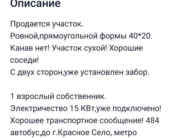 Земельный участок 8 соток, правильной прямоугольной формы, ровный, сухой, рядом постоянно проживают соседи;