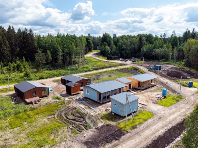 - освещением по всей территории посёлка и на подъездной дороге. Прямо до участка дорога асфальтированная. Дома построены в едином стиле.