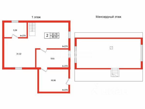 2 этаж: четыре комнаты, две из которых имеют выходы на балконы.