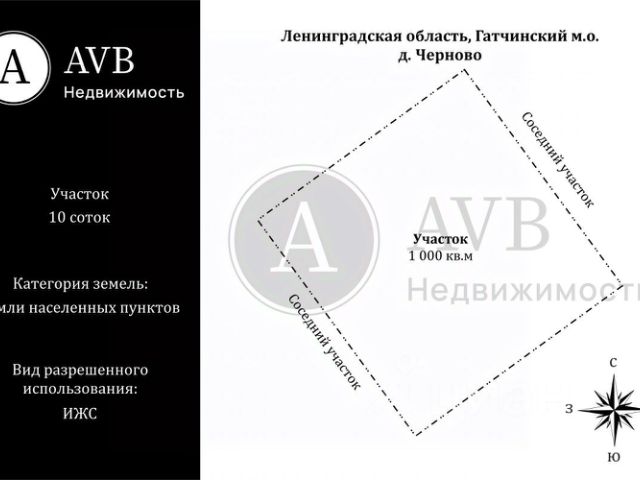 Хороший земельный участок! Участок ровный, правильной формы, сухой и солнечный! Борщевика нет, в деревне есть свое озеро (река). Точный адрес: Российская Федерация, Ленинградская область, Гатчинский муниципальный округ, д. Черново. Кадастровый номер: 47:23:0257002:732. Возможен самостоятельный просмотр, точка на карте верная. Площадь - 10 соток. ИЖС. Газ по границе участка. Дорога асфальтовая до поворота к участку, дальше 100 метров грунтовки, в 2026 году администрация будет отсыпать ее щебнем. Магазин продуктов в деревне. 1 взрослый собственник! Все документы готовы к сделке. Межевание проведено. Просмотр возможен в любой день. Можно самостоятельно посмотреть, точка на карте верная. Полное юридическое сопровождение сделки и гарантия финансовой защиты, в том числе для покупателя. Помогу одобрить ипотеку. Возможно оформить совместно с подрядом на строительство. Звоните! Номер объекта: #1/536941/24310