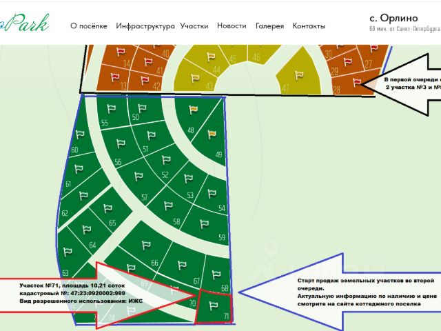 СТАРТ ПРОДАЖ ВТОРОЙ ОЧЕРЕДИ!!!! УСПЕЙТЕ ЗАБРОНИРОВАТЬ И КУПИТЬ! Прекрасное расположение участка, находится непосредственно у лесополосы. Продается замечательный земельный участок ИЖС в новом, современном коттеджном поселке "Orlino Park" комфорт класса. Участок в окружении густого смешанного леса (грибы,ягоды), в пешей доступности (700 м) находится живописное "Орлинское озеро" с пляжами, "Серебряный" родник, а также Храм Преображения Господня. Идеальное место для загородного отдыха! ПАРАМЕТРЫ ЗЕМЕЛЬНОГО УЧАСТКА: Участок ровный и сухой. КАТЕГОРИЯ ЗЕМЕЛЬ: Земли населенных пунктов. Площадь участка 10 соток. Кадастровый номер:47:23:0920002:996. Местоположение: Ленинградская область, Гатчинский муниципальный район, Дружногорское городское поселение, деревня Лампово. На генплане коттеджного поселка - это 2-я очередь строительства. Условный номер участка 68. В ближайшее время начнутся работы по прокладке дороги на территории 2-ой очереди. ВИД РАЗРЕШЕННОГО ИСПОЛЬЗОВАНИЯ: ИЖС- для индивидуального жилищного строительства! Коттеджный поселок расположен в тихом, экологически чистом районе, вдали от шумных трасс, в окружении дивной природы. На въезде шлагбаум Широкие качественные дороги; На участке трава. Грунт суглинок (глина с песком). Плодородный слой 30-35 см. Электричество мощностью 15 кВт от Ленэнерго, опорные столбы уже установлены в поселке; Открытая система водоотведения; Газификация до границ земельного участка осуществляется бесплатно по гос. программе; Вода скважина на глубине 18-23 м; Канализация локальная - септик c выводом за пределы участка. ТРАНСПОРТНАЯ ДОСТУПНОСТЬ И ИНФРАСТРУКТУРА: Удобная транспортная доступность. Доехать в посёлок можно несколькими маршрутами. Первый проходит - через Киевское , второй- через Сиверское шоссе. В 3-х км. находится ж/д станция Строганово - 1 час 30 минут на электричке от Балтийского вокзала. На АВТОБУСЕ ( от ж/д станции "Сиверская" до Орлино остановка угол ул. Мира и ул. Центральной) ходят автобусы по расписанию 505, 506, 506А, 507 и маршрутка 120Т. ДОСТОПРИМЕЧАТЕЛЬНОСТИ: В пешей доступности находятся: Парк Усадьба Орлино; Озеро "Орлино"( излюбленное место для любителей рыбной ловли); В радиусе 1 км находятся: строительный, продуктовый магазины, чуть дальше сетевые (Магнит, Пятёрочка). Банкоматы п. Дружная Горка. Детский сад (д. Лампово, пгт Дружная горка), школа (гпт. Дружная горка). НАШИ ПРЕИМУЩЕСТВА: У нас нет никаких скрытых дополнительных платежей! Прямая продажа земельного участка от собственника по договору купли-продажи! Объект аккредитован по ипотеке в Сбербанке. Также мы предоставляем клиентам рассрочку. Подробности уточняйте, пожалуйста, в отделе продаж! Полное юридическое сопровождение сделки идет Вам в подарок! Безопасные взаиморасчеты по сделке- через аккредитив! В выходные дни тоже проводим показы! Пожалуйста, звоните и записывайтесь на просмотр участков в удобное время!