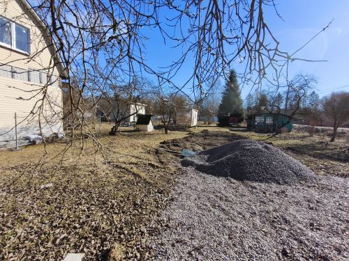 На участке проведен дренаж по периметру и дренажный колодец. Заложен ФУНДАМЕНТ под гараж. Имеется большой ХОЗБЛОК. В наличии утеплитель для дома, а также комплект ОКОН с другого дома, что позволит существенно сэкономить на обустройстве. Окна требуют замены, так как были повреждены недобросовестными подрядчиками. Дополнительно на участке — большая куча ЧЕРНОЗЕМА для сада и посадок, несколько уже посаженных и растущих деревьев.