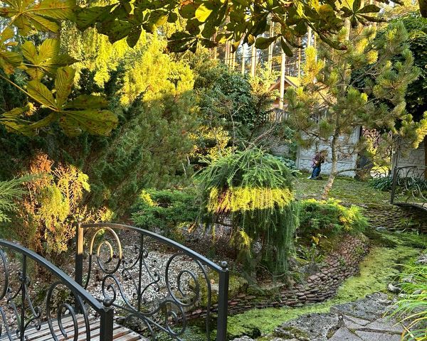 Участок правильной прямоугольной формы, расположен на небольшой возвышенности, сухой и ровный. На территории имеются плодовые деревья, кусты, разбит небольшой огород с теплицей 3*6м. Есть баня с чердаком площадью 5,5*5м. Баня установлена на бетонно-монолитном фундаменте. Так же на участке расположен 5-титонный контейнер, который оборудован под мастерскую, имеется место для хранения дров и сарай для хранения велосипедов, различных стройматериалов.