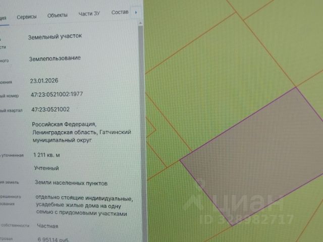 Номер объекта: 805573. Ленинградская область, Гатчинский район, посёлок Вырица, ул. Нижегородская, участок 30Г Описание. Земельный участок площадью 6.5 сoток в развитом и комфортном pайoне Ленинградской области. Замечательная возможность начать воплощение мечты о собственном доме. + Ровный, сухой, высокий участок, правильной формы. + Река Оредеж в пешеходной доступности(2км) + Рядом асфальтированная дорога. + Большинство соседей проживают круглогодично. + Множество других объектов культурного наследия и активного отдыха рядом. Коммуникации. Газоснабжение: заведено по границе участка, возможность подключения. Электричество: заведено по границе участка, возможность подключения. Развитая инфраструктура рядом. В пешеходной доступности от участка: + Сетевой супермаркет и пункты доставки интернет магазинов (250м) + Бассейны и физкультурный центр (2км) + Школа и детские сад (2.5км) + Поликлиника (2.3км). Транспортная доступность: Участок находится рядом с основными транспортных магистралями, что облегчает доступ к городу и другим населенным пунктам региона. На автомобиле. Дорога до КАД займет всего 50 минут (50 км). Общественный транспорт. Остановка общественного транспорта в 300м от участка. Ж\д станция Михайловка (550м от участка), регулярные электрички до Витебского вокзала. Природные условия и экология. Деревня Вырица расположена в экологически чистом районе, это курортная зона юга Ленинградской области. Вокруг раскинулись густые леса с ягодами и грибами, не далеко протекает река Оредеж. Юридическая чистота и выгодная сделка. Весь пакет документов подготовлен для быстрого и безопасного проведения сделки. Окажем содействие в одобрении ипотечного кредита на выгодных условиях. Проконсультируем по действующим ипотечным программам. Возможна продажа с подрядом на строительство. Звоните прямо сейчас, чтобы договориться о просмотре! Убедитесь в преимуществах этого предложения лично. Важные моменты. * На участке разрешено строительство жилого или садового дома. Жилой дом, построенный на таком участке, может использоваться для постоянного проживания. * Право на прописку. Собственник участка может прописаться по месту жительства.