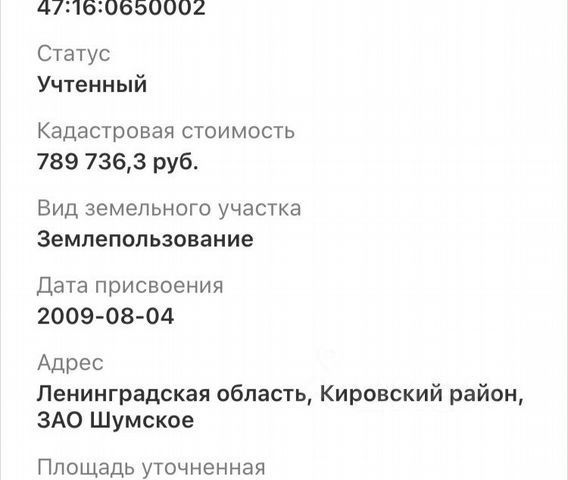 Предлагаем земельный участок 14,7 соток в ДНП Гаричи, где можно насладиться гармонией с природой, свежим воздухом, отдохнуть от суеты мегаполиса Расположение: Ленинградская область, Кировский муниципальный район, Шумское сельское поселение, ДНП "ГАРИЧИ" категория - земли сельхоз, назначения вид разрешенного использования - для ведения дачного хозяйства (можно построить и зарегистрировать жилой дом, в котором возможная постоянная регистрация) УЧАСТОК: - Высокий ровный и сухой, - выполнены ландшафтные работы - высажено множество туй (64 штуки) и другие садовые кустарники ; - участок размежеван, - весь участок огорожен забором, установлены ворота. Въезд на территорию к участку осуществляется через шлагбаум и пункт охраны. На территории ДНП в 5 минутах от дома - круглосуточный продуктовый магазин, детская площадка, в летний сезон 2 раза в неделю привозят фермерские продукты. Все дороги чистят в сезон, проложено уличное освещение. На територии ДНП протекает речка Гаричи, где оборудован пляж для отдыха и купания. ЛОКАЦИЯ: - отличная транспортная доступность от Санкт-Петербурга по Мурманскому шоссе ( по шоссе 80 км до КАД), - ж/д станция Войбокало - 9 минут на машине (от станции ходят маршрутки и местные такси), - маршрутные автобусы до Кировска и до Кобоны (Ладожское озеро), - В Шуе доступны все объекты социальной инфраструктуры - детский сад, школа, магазины ПЯТЕРОЧКА, МАГНИТ, СБЕРБАНК, старинная церковь. Звоните! Расскажем дополнительные подробности, организуем оперативный показ! Продается земельный участок в сельском поселении Шумское Кировского района.