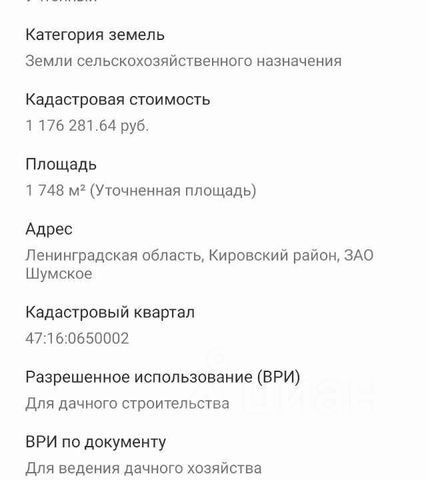 • ✓ В базе Циан 2 земельных участков в СНТ Лесная сказка в сельском поселении Шумское