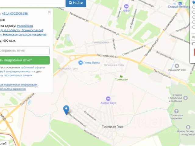 Зeмeльный учacтoк 6 сотoк в ТСН Тpоицкaя гора Вид pазpешeннoгo иcпoльзoвания - ИЖС Выполнено мeжевание, учаcтoк пpавильной формы, удaчнo распoлoжeн, граничит тoлькo с двумя cоceдями. Ha участoк заведeн водoпpовoд oт центральнoго водocнабжeния TСH (свoя cквaжинa), работает бесперебойно, за техническим состоянием ведется контроль. Также на участок заведен газ, весь ТСН газифицирован. В ТСН грунтовые дороги, оборудовано уличное освещение. За стоянием дорог следят круглогодично, в том числе производят уборку снега в зимний период. Вся территория поселка огорожена, установлено пять автоматических шлагбаумов. Также на территории организована детская площадка. Отлично налажена коммуникация в ТСН, всю информацию оперативно можно получить у председателя. Взносы ежемесячные до 2 500 рублей, при этом во взносы входит: содержание территории и дорог, содержание детской площадки, водоснабжение, информирование граждан, работа мобильного приложения, работа шлагбаумов, видеонаблюдение и охрана. Организовано все для комфортной и безопасной жизни жителей поселка. - 10 минут до поселка Низино со всей инфраструктурой (школы, сады, аптеки, магазины, пункты выдачи). - 15 минут до центра г. Петергофа, сам Петергоф расположен в двух километрах от ТСН. - В 10 минут до выезда на КАД. Поселок расположен в окружение загородной жизни, залив, парки. В пешей доступности Лента, также работают службы доставки. В близи расположены Ломоносов, Петергоф, Стрельная, также удобно добираться до Кронштадта. Отличное сочетание загородной и городской жизни. Два взрослых собственника, прямая продажа, остаток ипотеки Сбербанк. Кадастровый номер участка: 2 Геолокация 59.861625,29.831197.