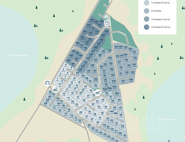 Цена полная, без доплат! включает стоимость земельного участка, точки подключения к коммуникациям (свет, вода) на границе участка и обязательное единое ограждение со стороны улицы (коричневый штакетник) с организацией въезда на участок (труба).