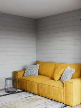 Цокольный этаж отведен под спа-зону с бассейном (44 кв. м), спортзал (34 кв. м), гараж на два автомобиля (3,611,5 м), котельную и холл.