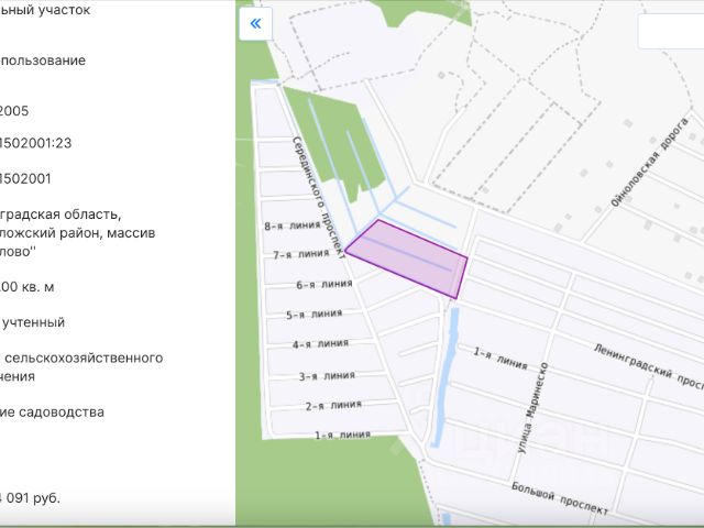 Продается участок 6 соток в СНТ Холмогорье в 30 км от КАД, от шоссе 1,5 км по грунтовой дороге. До ж/д станции 39 км 2 км через садовые поселки. Адрес: Российская Федерация, Ленинградская область, Всеволожский муниципальный район, Лесколовское сельское поселение, массив Верхние Осельки, территория Холмогорье, улица Нижняя, участок 11.