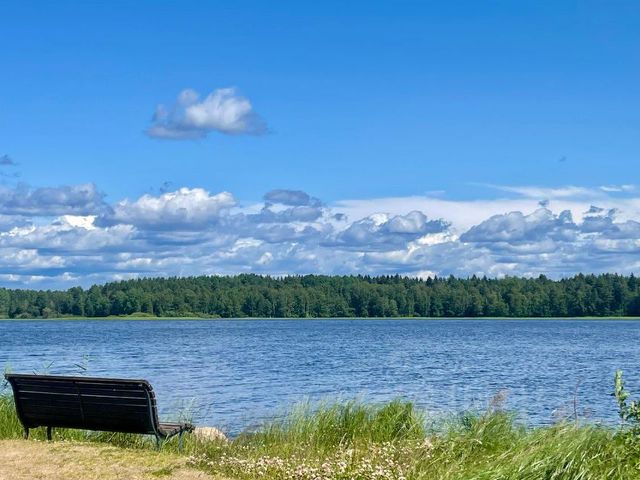 Построена деревянная детская площадка, качели, горка, тарзанка, песочница и каркасный бассейн. Дети целыми днями будут гулять на чистом воздухе в окружение сосновых деревьев.