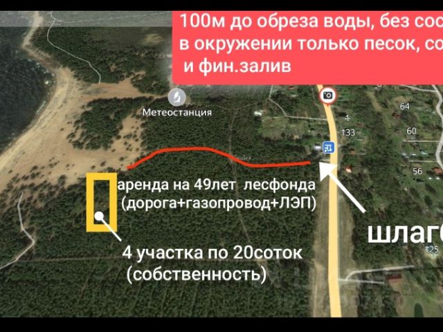 ID 7699 - пожалуйста, сообщите этот номер менеджеру. Предлагается к продаже земельный участок на первой береговой линии Финского залива, с участка открывается живописная панорама на Финский залив. Участок граничит с поселком городского типа Озерки, МО "Приморское ГП", Выборгского района, Ленинградской области. Удаленность от Санкт-Петербурга 79 км. Площадь участка составляет 1,95 га. Форма права аренда на 49 лет. Участок фактически состоит из двух участков 1 и 2, имеет два вида разрешенного использования: Участок 1 площадью 0,25га, вид разрешенного использования: для строительства индивидуального жилого дома. По окончании строительства появляется возможность государственной регистрации права собственности на жилой дом и прилегающую территорию. Участок в аренде на 49 лет, арендодатель Администрация МО "Выборгский район" Ленинградской области, договор действует с 08.11.2012г. Участок 2 площадью 1,7га, вид разрешенного использования: под организацию базы отдыха. Участок в аренде на 49 лет, арендодатель Межрегиональное территориальное управление Федерального агентства по управлению государственным имуществом в Санкт-Петербурге и Ленинградской области, договор действует с 24.07.2017г. Рельеф на отведенной территории спокойный, ровный. Леса хвойные, растительность представлена преимущественно луговыми травами. Продается земельный участок в поселке Озерки Выборгского района.