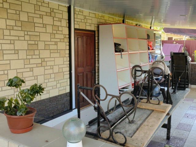 На высоком первом этаже - находится веранда, кухня и две комнаты. Кухонная мебель новая. Окна на кухне покрыты солне-отражающей пленкой, вид из окон в сад. Фильтры воды-установлены. В ванной комнате - бойлер, туалет, гигиенический душ и ванная .