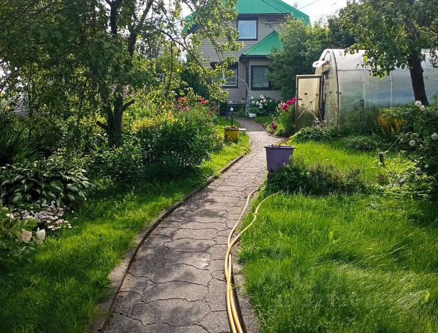 Участок 12 соток, ровный с деревьями, кустарниками в том числе цветущими. Есть парник.