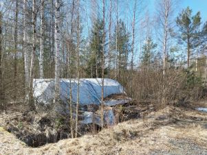УЧАСТОК: 10 сoток, угловой, сухой, правильной формы. Не разработан. Заросший соснами и березами. Некоторые большие и здоровые, смотрятся великолепно, их можно оставить по желанию. Вокруг участка выкопаны дренажные канавы. Получился и участок сухой и имеет свою изюминку. Есть заезд, проложена труба. Помимо этого, там находятся бревенчатый комплект для бани. Бревна все прономерованы, сложены и закрыты. Они видны на фото. Покупателю они пойдут бонусом.