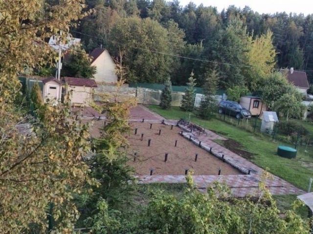 Въезд отсыпан щебнем , имеется стоянка на два автомобиля, оформлены дорожки из дерева, имеется мангальная зона.