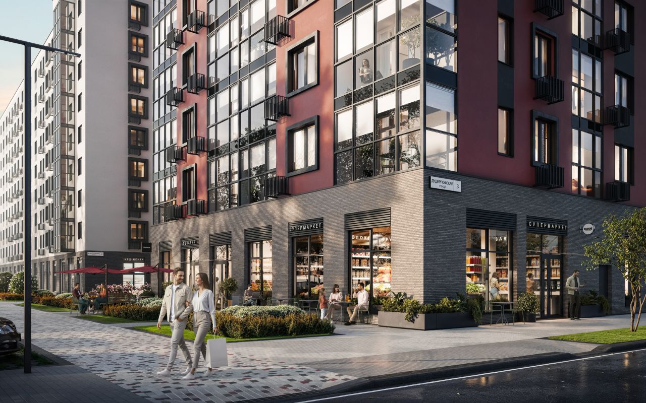 Масштабный жилой комплекс на юго-западе Ленинградской области. Монолитные дома высотой до 12 этажей в скандинавском стиле, приватные дворы без машин и собственная инфраструктура для жителей.