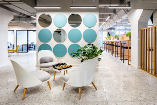 Аренда 1 + 2 этажа (420+420 м2). В наличии также 100 м2 лобби и общая зона openspace для отдыха и встреч в зоне кафе.