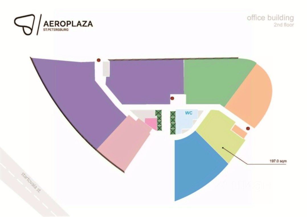 Помещение площадью 197 м² на втором этаже Делового Центра Аэроплаза.