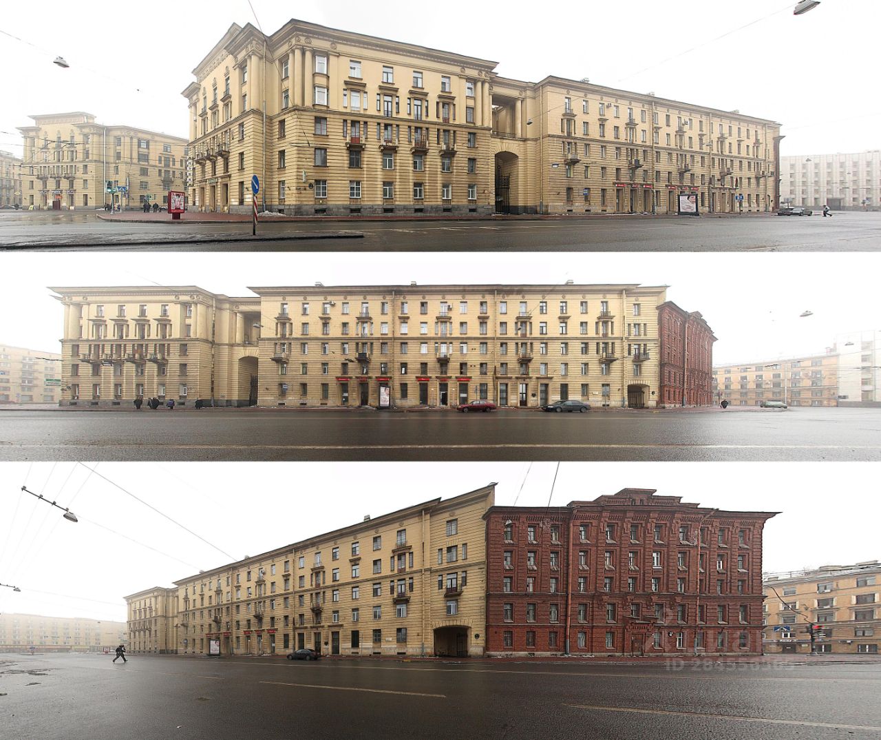 Напротив, через дорогу, находится жилой квартал у Большеохтинского моста.